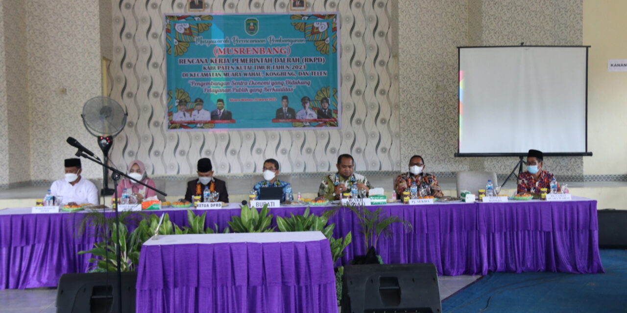 Musrenbang dipimipin Bupati Kutai Timur (Kutim) Ardiansyah Sulaiman, didampingi Wabup Kasmidi Bulang, Pjs Sekkab Yuriansyah, Ketua DPRD Kutim Joni, Wakil Ketua I Arfan, Wakil Ketua II Asti Nazar Bulang. Serta turut dihadiri Forkopimda, Camat Kongbeng Furkani, Plt Camat Telen beserta jajarannya, Kepala Desa di tiga Kecamatan tersebut, perwakilan perusahaan dan OPD-OPD lainnya.
